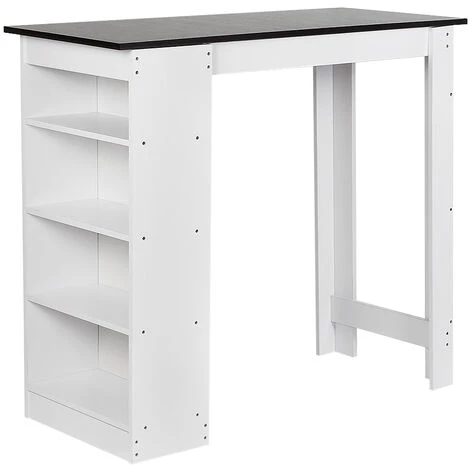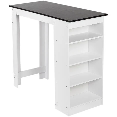 OOBEST Table Haute Table De Bar Mange-debout Avec 4 Etagères De Rangements, Blanc + Noir