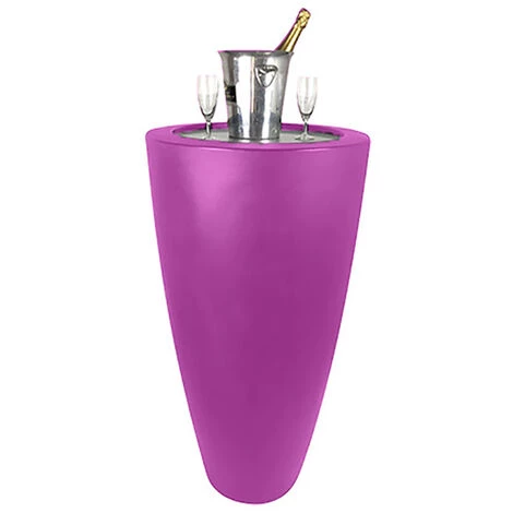 Pot conique DELIGHT 3 en 1: pot de fleurs, seau à champagne et table de cocktail couverte d’un disque inox. Vase décoratif, pot de fleurs, seau à champagne, table de cocktail, le pot conique DELIGHT est un bouquet de plaisirs qui fera sensation en intérieur , terrasse, balcon, jardin, espaces professionnels tant il est raffiné et majestueux avec ses formes douces et imposantes. Fabrication 100% française pour un objet de décoration innovant, beau et pratique. 100% recyclable. Disponible en blanc, gris, taupe, noir, rouge, orange, violet, vert anis, rose, bleu.