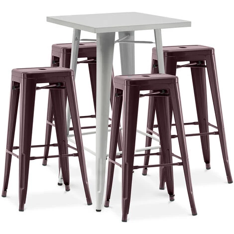 PRIVATEFLOOR Table De Bar Argentée + X4 Tabourets De Bar En Acier Ensemble Bistrot Stylix Design Industriel – Nouvelle édition Bronze – – Bronze