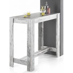 ALTOBUY ADRIAN – Table Bar 120cm Effet Bois Blanc Vieilli – Blanc