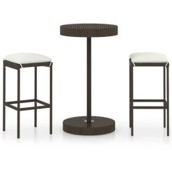 ASUPERMALL Meuble De Bar De Jardin 3 Pcs Et Coussins Resine Tressee Marron