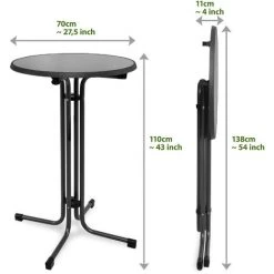 Beautissu Table Haute Pliante Outdoor Sylt Gris, 70cm (∅)