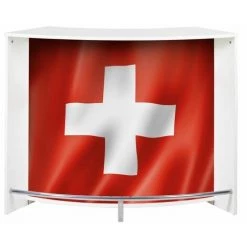 BEAUX MEUBLES PAS CHERS Meuble Bar, Meuble Comptoir Blanc 135 Cm – Coloris: Drapeau Suisse 650