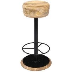 HAPPYSHOPPING Ensemble De Bar 3 Pcs Bois Massif Recycle Et Cuir De Chevre