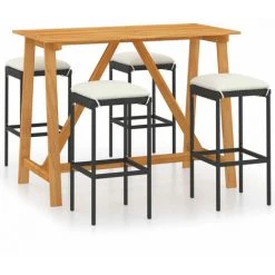 HAPPYSHOPPING Ensemble De Bar De Jardin Avec Coussins 5 Pcs Noir