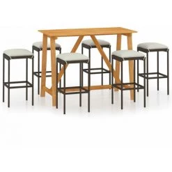 HAPPYSHOPPING Ensemble De Bar De Jardin Avec Coussins 7 Pcs Gris