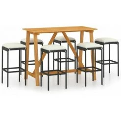 HAPPYSHOPPING Ensemble De Bar De Jardin Avec Coussins 7 Pcs Noir