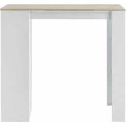 HELLOSHOP26 Table De Bar Haute Avec Rangement Table Bistro 110 Cm Blanc Et Chêne – Beige
