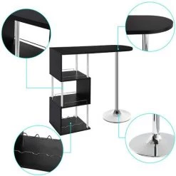 HELLOSHOP26 Table De Bar Moderne Avec Trois Espaces D’étagères MDF Et Métal Noir – Métal