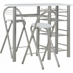 Hommoo Ensemble De Bar Avec Etageres 3 Pcs Bois Et Acier Blanc HDV24937