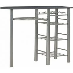 Hommoo Ensemble De Bar Avec Etageres 3 Pcs Bois Et Acier Gris HDV24939