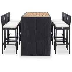 INLIFE Meuble De Bar De Jardin 7 Pcs Et Coussins Résine Tressée Noir – Noir