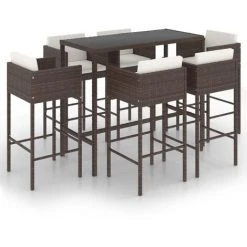 INLIFE Jeu De Bar De Jardin 7pcs Et Coussins Anthracite Résine Tressée