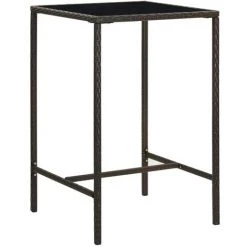 INLIFE Table De Bar De Jardin Marron 70x70x110 Cm Résine Tressée Verre