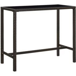 INLIFE Table De Bar De Jardin Marron 130x60x110cm Résine Tressée Verre