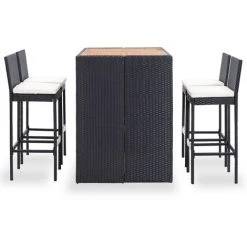 NOVA Garden Bar Set 5 PC Ensemble De Bar 5 Pcs Résine Tressée Et Bois D’acacia Noir