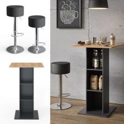 Table De Bar „Rodeo » Anthrazit/Goldkraft Avec 2 Tabourets Vicco