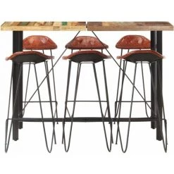 Ensemble De Bar 7 Pcs Bois De Récupération Et Cuir Véritable Modèle 1 VidaXL
