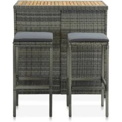 YOUTHUP Ensemble De Bar 5 Pcs Bois D’acacia Cuir Véritable Et Toile – Brun