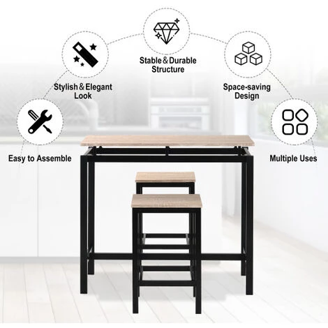 6. ¡¾Set de table pub 3 pieces¡¿ Creez votre propre pub a la maison avec le napperon pub Bonnlo 3 pieces. Cet ensemble contient 1 table a hauteur de comptoir et 2 tabourets de bar. Gardez les tabourets en dessous pour minimiser l’espace de la table. Taille parfaite pour une petite cuisine, des coins petit-dejeuner, des restaurants, des salons ou des pubs.
