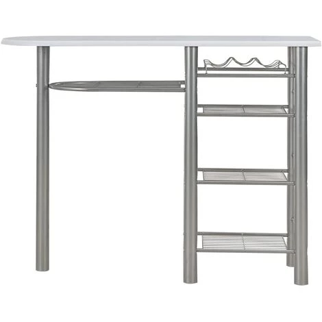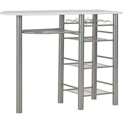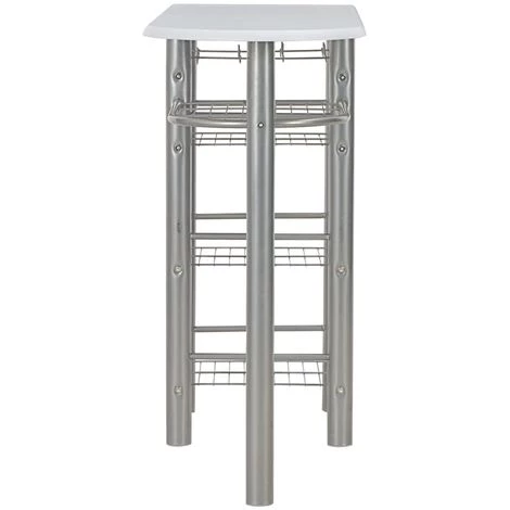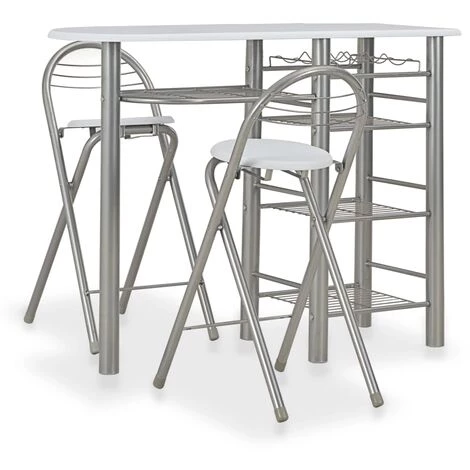 Fabriqué en bois et en acier durable, cet ensemble de bar en 3 pièces se distingue par sa polyvalence et constituera un supplément distinctif aux maisons, aux jardins, aux bars, aux pubs ou aux restaurants. Fabriqué en bois durable, les surfaces sont faciles à nettoyer. Les cadres en acier offrent une grande stabilité. Les chaises peuvent être repliées lorsqu’elles ne sont pas utilisées, afin de gagner de la place. De plus, plusieurs tablettes de rangement et un porte-bouteilles de vin se trouvent sous la table pour que vos affaires soient bien organisées et à portée de main. L’ensemble de salle à manger est facile à assembler. La livraison inclut 1 table avec étagères et 2 chaises pliantes.