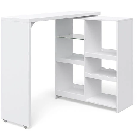 à portée de main. La partie étagère peut être déplacée en toute facilité, selon votre gré, à l’horizontale. Les surfaces de la table de bar sont fabriquées dans un matériau facile d’entretien. Universel, le décor blanc passe dans n’importe quel environnement.