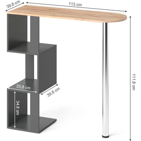 - La table de bar mesure 113 x 111,8 x 39,8 cm (l x h x p).