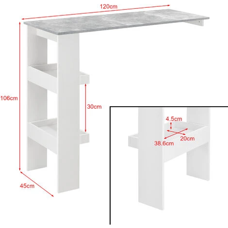 Cette table de bar se fait remarquer non seulement par sa construction originale mais grâce à son design moderne. Elle sera un accessoire fonctionnel et esthétique de votre maison. D’un côté, cette table de bar doit être montée contre le mur. De l’autre côté, vous pourrez profiter des espaces de stockage pratiques.