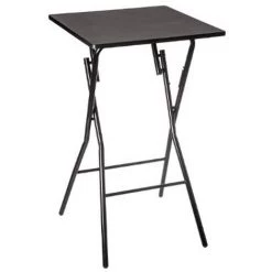 Table de bar pliante en métal coloris noir, facile à ranger, pour la nettoyer essuyer avec un chiffon humide puis terminer en essuyant avec un chiffon sec. Ne pas s’asseoir sur le plateau. Dimensions : L.60 x l.60 x H.103 cm – Matière: MDF/métal – Couleur: Noir