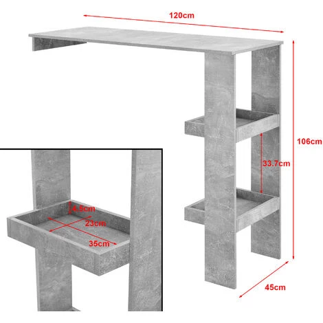 Cette table de bar se fait remarquer non seulement par sa construction originale mais grâce à son design moderne. Elle sera un accessoire fonctionnel et esthétique de votre maison. D’un côté, cette table de bar doit être montée contre le mur. De l’autre côté, vous pourrez profiter des espaces de stockage pratiques.