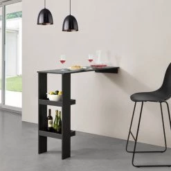 Cette table de bar se fait remarquer non seulement par sa construction originale mais grâce à son design moderne. Elle sera un accessoire fonctionnel et esthétique de votre maison. D’un côté, cette table de bar doit être montée contre le mur. De l’autre côté, vous pourrez profiter des espaces de stockage pratiques.