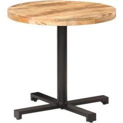 - Matériau : bois de manguier brut avec une finition naturelle, fer avec revêtement en poudre noire