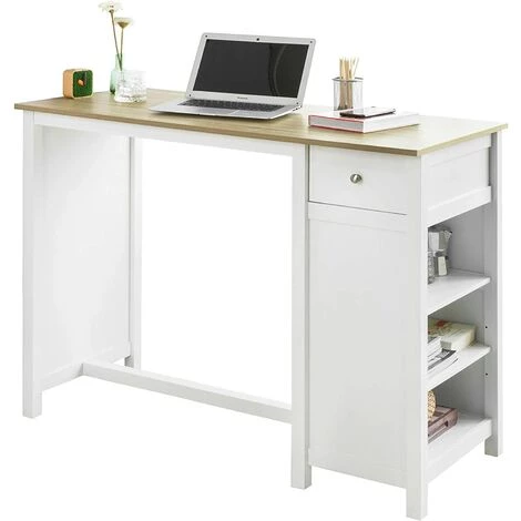 SoBuy FWT64-WN Table Haute de Bar Mange-debout Cuisine avec 1 Tiroir et Rangements 3 Niveaux – Blanc Lxlxh 120x55x90cm Design moderne et élégant. Cette table haute mange-debout est parfait pour la cuisine, le salon, le balcon, etc. Idéal d’être utilisé comme table de bar ou îlot de cuisine séparant une cuisine ouverte sur séjour. Idéal dans une cuisine ou un séjour pour passer un moment convivial autour de cette table haute de bar, qui est également facile d’entretien. Avec un style de table simple et chic, cette table peut être facilement associé à n’importe quelle décoration d’intérieur. Avec 1 tiroir et 3 niches de rangements sur le côté du meuble. Il ajoute un espace de stockage supplémentaire pour votre cuisine. Le tiroir peut être ouvert à l’avant et à l’arrière de la table.Tapis protecteurs Anti-dérapant pour éviter les dommages causés par les rayures. Facile à nettoyer. Entretien: Se nettoie facilement à l’aide d’un chiffon légèrement imbibé d’eau. Caractéristiques : Matériau : Bois MDF de classe E1 avec revêtement résistant à la mélamine. Dimensions (Lxlxh): 120x55x90cm.Dimensions des étages : 42cmx30cmx18cm. Capacité Max : table : 75kg, étagère : 10kg/ étage. Poids de l’envoi : 29kg. Cet article est livré sans éléments décoratifs des photos. Livré à monter soi-même facilement avec notice de montage détaillée. Autres table de bar similaires : FWT17-W (blanc), FWT17-Sch (noir), FWT55-W (blanc), FWT55-Sch (noir) et FWT56-W (blanc)Lot de 2 tabourets de bar FST29-WN : https://www.amazon.fr/dp/B07SV1W3JJ?ref=myi_title_dp Facture fournie.