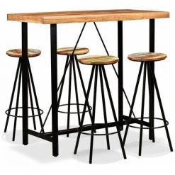 Cet ensemble de bar cool a un style industriel et sera un supplément distinctif à n’importe quelle maison, bar ou restaurant. La table de bar est en bois massif de Sesham. Le Sesham, également connu sous le nom de bois de rose ou de palissandre, est un bois dur tropical célèbre pour ses grains riches. Elle est entièrement faite à la main et les magnifiques grains de bois rendent chaque meuble unique et légèrement différent l’un de l’autre. Les pieds en acier robuste rendent la table de bar très robuste et durable et s’ajoutent à son style industriel spectaculaire. Les tabourets de bar sont faits de bois de récupération massif, ce qui signifie qu’ils ont les caractéristiques de différents bois comme le Sesham, le teck, le bois de manguier, l’acacia, etc. Le bois récupéré est solide, stable, durable et beau. Les signes d’usure donnent à chaque pièce un aspect unique et les pieds en acier ajoutent au style industriel spectaculaire. Chaque étape du processus de construction est réalisée avec le plus grand soin, que ce soit la recombinaison, le polissage, la peinture ou le laquage. La livraison comprend 1 table de bar et 4 tabourets de bar. L’assemblage est facile. Remarque importante : Les grains et les couleurs du bois peuvent varier d’une pièce à l’autre, ce qui rend chaque pièce unique et légèrement différente de la suivante ; la livraison est aléatoire.