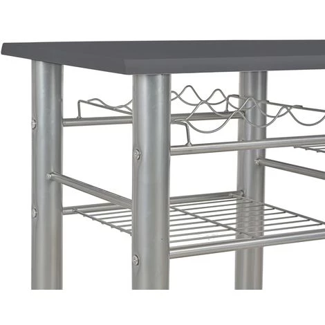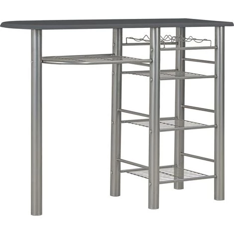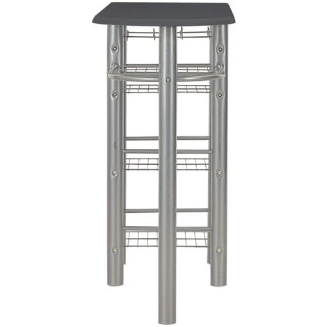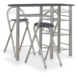 Fabriqué en bois et en acier durable, cet ensemble de bar en 3 pièces se distingue par sa polyvalence et constituera un supplément distinctif aux maisons, aux jardins, aux bars, aux pubs ou aux restaurants. Fabriqué en bois durable, les surfaces sont faciles à nettoyer. Les cadres en acier offrent une grande stabilité. Les chaises peuvent être repliées lorsqu’elles ne sont pas utilisées, afin de gagner de la place. De plus, plusieurs tablettes de rangement et un porte-bouteilles de vin se trouvent sous la table pour que vos affaires soient bien organisées et à portée de main. L’ensemble de salle à manger est facile à assembler. La livraison inclut 1 table avec étagères et 2 chaises pliantes.