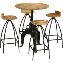 Cet ensemble de bar sera un excellent supplément à la décoration de votre cuisine ou salle à manger. L’ensemble est fait de bois de manguier massif et d’un cadre robuste en acier et est très stable et durable. La hauteur de la table est réglable pour une utilisation pratique. Les dossiers et les repose-pieds ajoutent au confort d’assise de l’ensemble. Les cadres en acier contribuent à la stabilité de l’ensemble ainsi qu’à son style industriel. Chaque étape du processus de fabrication est réalisée avec le plus grand soin, que ce soit la recombinaison, le polissage, la peinture ou le laquage. L’assemblage est facile. La livraison comprend 1 table de bar et 4 chaises de bar. Remarque importante : les couleurs et les grains de bois peuvent varier d’une pièce à l’autre, ce qui rend chaque pièce unique et légèrement différente de la suivante ; la livraison est aléatoire.