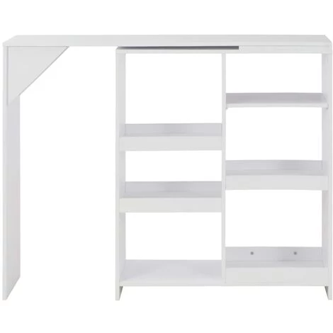 Notre table de bar est le choix parfait pour les pièces où l’espace est un peu limité en raison de sa tablette amovible. Son design contemporain fait de cette table un supplément chic à votre cuisine ou à votre salle à manger. Fabriquée en panneau d’aggloméré robuste, elle est durable, stable et facile à nettoyer. Le cadre en forme de L et le triangle de renforcement de la table confèrent à la table une stabilité optimale. De plus, avec sa hauteur idéale et son design spécial, cette table haute complétera certainement la décoration de votre maison. Sentez-vous à l’aise et savourez un verre ou un repas en famille ou entre amis ! La table de bar est facile à assembler.