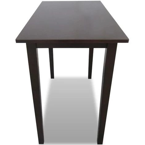 Cette table de bar élégante sera un excellent supplément à votre cuisine ou salle à manger et elle peut être utilisée aussi dans le couloir comme une table console. Le design élégant de la table de bar la fait un accessoire intemporel dans votre maison. Grâce au dessus de table en placage de bois véritable et aux pieds en bois d’hévéa, elle est à la fois de haute qualité et facile à nettoyer. La livraison inclut 1 table de bar marronne.