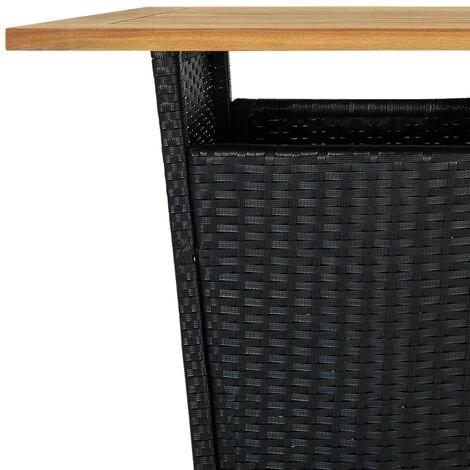Sirotez votre vin prĂ©fĂ©rĂ© ou savourez un bon repas autour de cette table de bar en rĂ©sine tressĂ©e ! DotĂ©e d’un cadre en acier enduit de poudre recouvert de rĂ©sine tressĂ©e rĂ©sistante aux intempĂ©ries, cette table de comptoir garantit des annĂ©es d’utilisation en plein air. De plus, le dessus de table et la base en bois d’acacia massif ajoutent de la robustesse et de la stabilitĂ© supplĂ©mentaires. Le dessus de table en bois avec un design Ă lattes est idĂ©al pour placer des boissons, de la nourriture, etc. GrĂące Ă la construction en rĂ©sine tressĂ©e lĂ©gĂšre, cette table de jardin est facile Ă dĂ©placer.