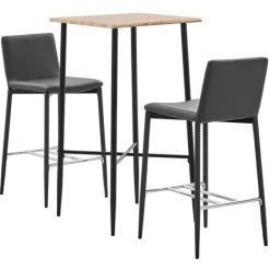 Avec un design moderne et contemporain, notre ensemble de bar est idĂ©al pour les maisons, jardins, bars, pubs ou restaurants modernes. Son design Ă©purĂ© et contemporain complĂ©tera toute dĂ©coration intĂ©rieure. Le dessus de table est en MDF qui est facile Ă nettoyer. Le cadre en acier enduit de poudre ajoute Ă la stabilitĂ© et Ă la soliditĂ© de la table de bar. Les chaises de bar ont une assise ergonomique avec dossier intĂ©grĂ© dans un look moderne et courbĂ©. De plus, elles sont faciles Ă monter. Notre ensemble de bar est idĂ©al pour savourer un verre de vin au bar, manger quelque chose au comptoir ou pour l’utiliser comme siĂšge supplĂ©mentaire lorsque vous avez des invitĂ©s. La livraison comprend une table de bar et 2 chaises de bar.