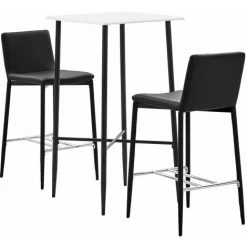 Avec un design moderne et contemporain, notre ensemble de bar est idéal pour les maisons, jardins, bars, pubs ou restaurants modernes. Son design épuré et contemporain complétera toute décoration intérieure. Le dessus de table est en MDF qui est facile à nettoyer. Le cadre en acier enduit de poudre ajoute à la stabilité et à la solidité de la table de bar. Les chaises de bar ont une assise ergonomique avec dossier intégré dans un look moderne et courbé. De plus, elles sont faciles à monter. Notre ensemble de bar est idéal pour savourer un verre de vin au bar, manger quelque chose au comptoir ou pour l’utiliser comme siège supplémentaire lorsque vous avez des invités. La livraison comprend une table de bar et 2 chaises de bar.