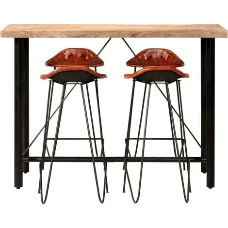 TRUE DEAL Ensemble De Bar 5 Pcs Bois Solide Et Cuir Véritable