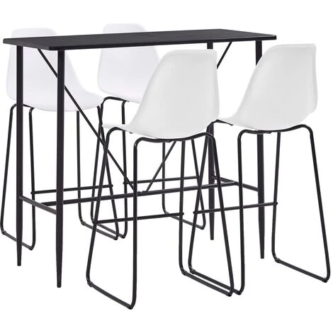 Avec un design moderne et contemporain, notre ensemble de bar est idéal pour les maisons, jardins, bars, pubs ou restaurants modernes. Son design épuré et contemporain complétera toute décoration intérieure. Le dessus de table est en MDF qui est facile à nettoyer. Le cadre en acier enduit de poudre ajoute à la stabilité et à la solidité de la table de bar. Les chaises de bar ont une assise ergonomique avec dossier intégré dans un look moderne et courbé. De plus, elles sont faciles à monter. Notre ensemble de bar est idéal pour savourer un verre de vin au bar, manger quelque chose au comptoir ou pour l’utiliser comme siège supplémentaire lorsque vous avez des invités. La livraison comprend une table de bar et 4 chaises de bar.