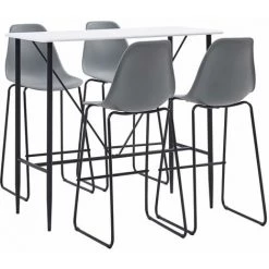 Avec un design moderne et contemporain, notre ensemble de bar est idéal pour les maisons, jardins, bars, pubs ou restaurants modernes. Son design épuré et contemporain complétera toute décoration intérieure. Le dessus de table est en MDF qui est facile à nettoyer. Le cadre en acier enduit de poudre ajoute à la stabilité et à la solidité de la table de bar. Les chaises de bar ont une assise ergonomique avec dossier intégré dans un look moderne et courbé. De plus, elles sont faciles à monter. Notre ensemble de bar est idéal pour savourer un verre de vin au bar, manger quelque chose au comptoir ou pour l’utiliser comme siège supplémentaire lorsque vous avez des invités. La livraison comprend une table de bar et 4 chaises de bar.
