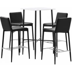 Avec un design moderne et contemporain, notre ensemble de bar est idéal pour les maisons, jardins, bars, pubs ou restaurants modernes. Son design épuré et contemporain complétera toute décoration intérieure. Le dessus de table est en MDF qui est facile à nettoyer. Le cadre en acier enduit de poudre ajoute à la stabilité et à la solidité de la table de bar. Les chaises de bar ont une assise ergonomique avec dossier intégré dans un look moderne et courbé. De plus, elles sont faciles à monter. Notre ensemble de bar est idéal pour savourer un verre de vin au bar, manger quelque chose au comptoir ou pour l’utiliser comme siège supplémentaire lorsque vous avez des invités. La livraison comprend une table de bar et 4 chaises de bar.