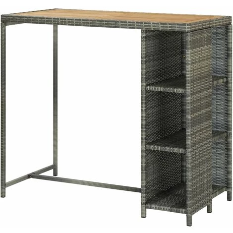 La table de bar avec étagère de rangement est un choix parfait pour toute maison, jardin, bar, pub, restaurant, etc. Cette table de bistro est faite de résine tressée et cadre en acier, ce qui la rend durable et stable. Le dessus de table robuste est fait de bois d’acacia massif et peut être utilisé pour mettre vos boissons et collations. Le support de rangement latéral comprend 3 étagères et offre un espace de rangement supplémentaire pour vos articles à portée de main. Grâce à sa construction légère, la table de salle à manger est également facile à déplacer.
