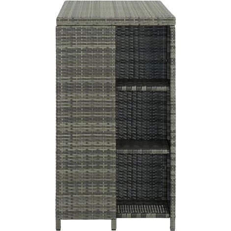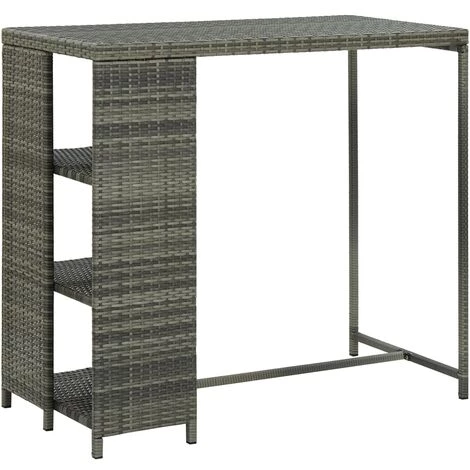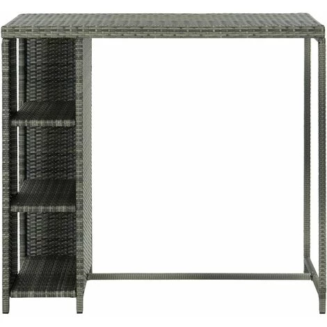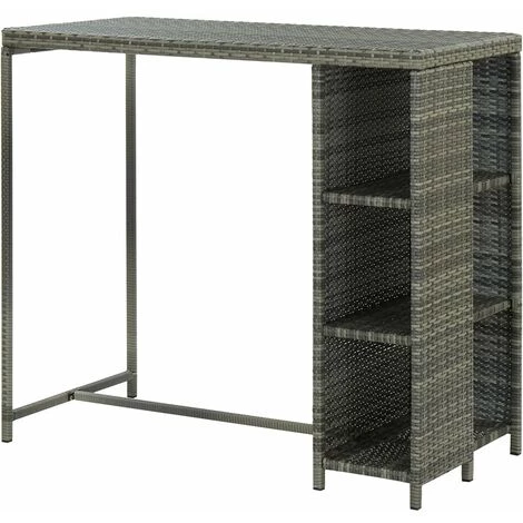 La table de bar avec étagère de rangement est un choix parfait pour toute maison, jardin, bar, pub, restaurant, etc. Cette table de bistro est faite de résine tressée et cadre en acier, ce qui la rend durable et stable. Le support de rangement latéral comprend 3 étagères et offre un espace de rangement supplémentaire pour vos articles à portée de main. Grâce à sa construction légère, la table de salle à manger est également facile à déplacer.