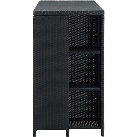 La table de bar avec étagère de rangement est un choix parfait pour toute maison, jardin, bar, pub, restaurant, etc. Cette table de bistro est faite de résine tressée et cadre en acier, ce qui la rend durable et stable. Le support de rangement latéral comprend 3 étagères et offre un espace de rangement supplémentaire pour vos articles à portée de main. Grâce à sa construction légère, la table de salle à manger est également facile à déplacer.