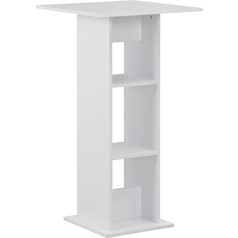 Cette table de bar apportera une touche pratique et attrayante à votre intérieur. Elle pourra également être utilisée comme table de salle à manger. Le design élégant de la table haute en fait un accessoire intemporel pour votre espace de vie. Grâce à la construction en aggloméré, la table de pub est très durable, stable et facile à nettoyer. De plus, il y a des petites étagères sous le dessus de table pour ranger des petits objets. La table de bar est facile à assembler.