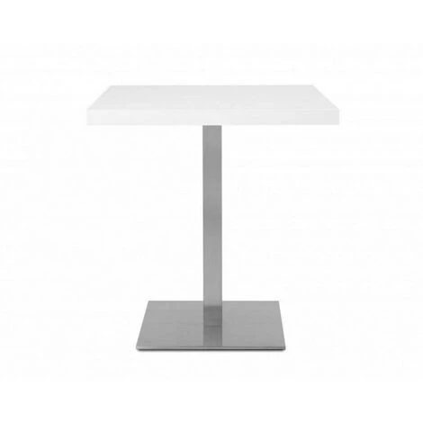 Table haute carrée 75 cm plateau blanc et piètement chrome